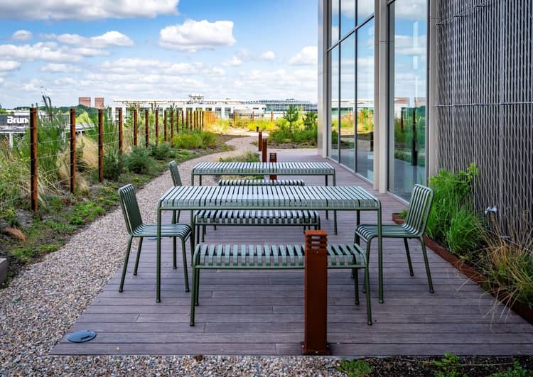 Werk en ontspanning zijn in Lucis One met elkaar vervlochten. Tussen alle kantoren op het gezamenlijke dakterras bevindt zich een licht glooiende tuin met ruimte voor divers groen en een wandelroute. Vanuit je werkplek loop je zo naar buiten om te genieten van de frisse lucht en een prachtig uitzicht over de Campus.